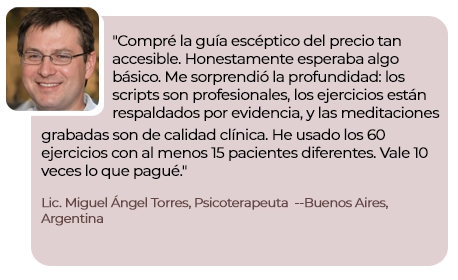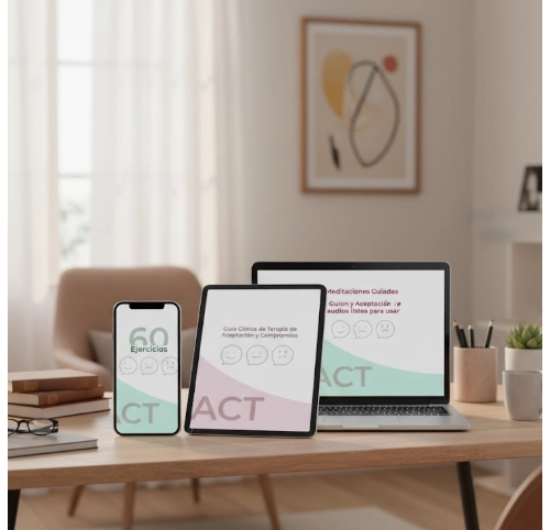 No. La guía está diseñada tanto para terapeutas formados en ACT que buscan protocolos estructurados, como para profesionales de otras orientaciones (especialmente TCC) que quieren integrar ACT en su práctica. Los scripts y ejercicios incluyen suficiente contexto teórico para aplicarlos correctamente sin certificación previa. .