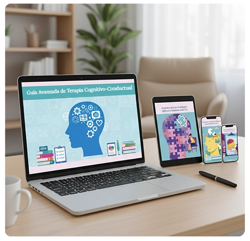 Usa guías visuales, plantillas clínicas y estudios de caso que estructuran tus sesiones y dan mayor claridad a tus intervenciones.